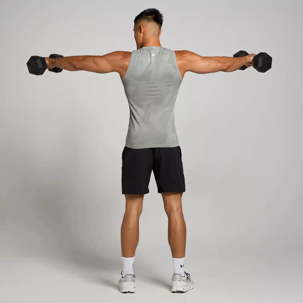 Az MP Férfi Tempo Pillar Graphic Seamless Tank trikó szürke színben csúcsteljesítményre készült.